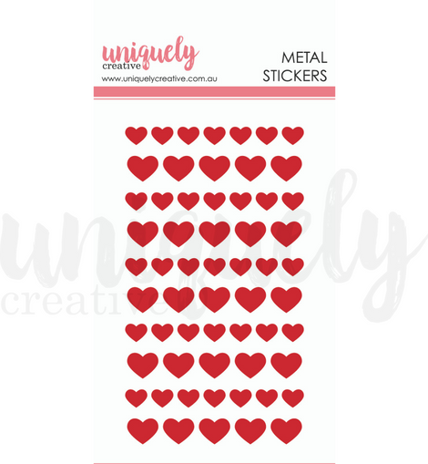 60 self-adhesive red metal heart stickers included in each pack